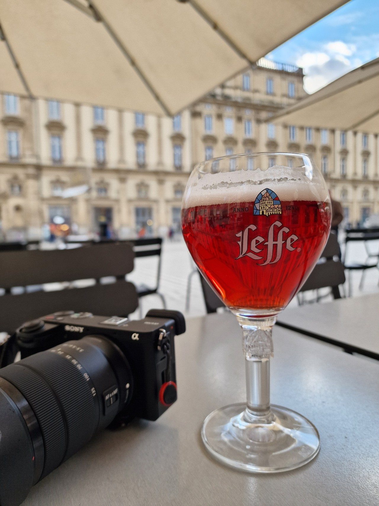 The back of Hotel de Ville and a lovely beer